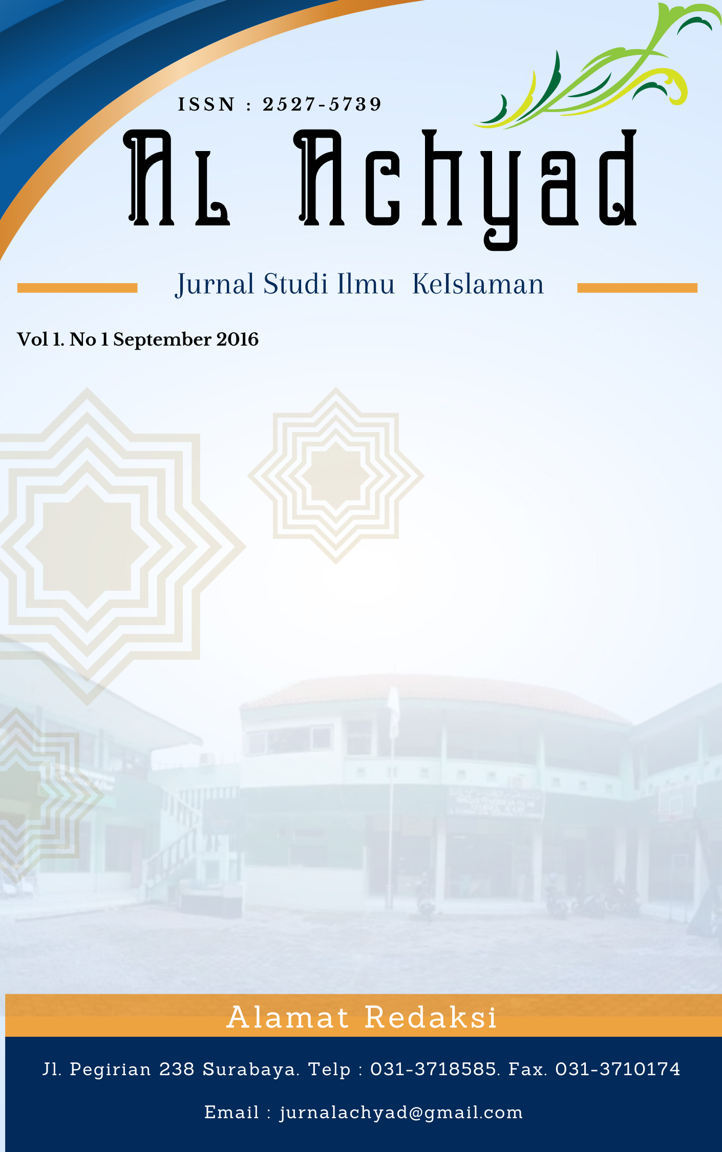 Al Achyad: Jurnal Studi Ilmu Keislaman (p-ISSN: 2527-5739; e-ISSN: 2549-077X) adalah jurnal yang diterbitkan dua kali setahun pada bulan Maret dan September. Fokus dan Scope mencakup berbagai isu tentang studi Islam interdisipliner mulai dari sejarah Islam, pemikiran, hukum, politik, ekonomi, pendidikan, hingga praktik sosial dan budaya.